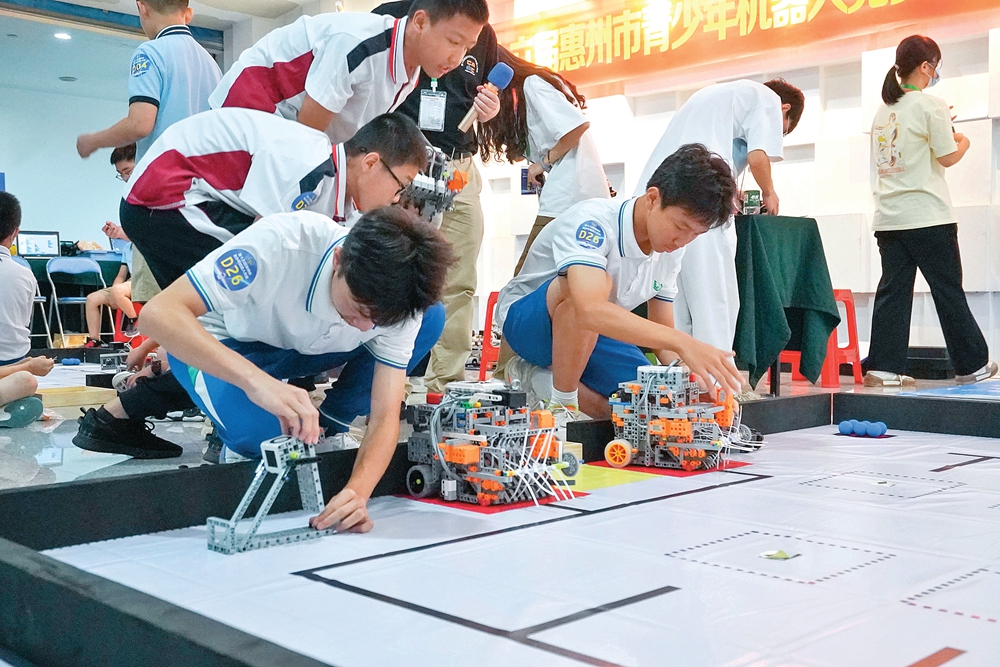 惠州市青少年機(jī)器人競(jìng)賽現(xiàn)場(chǎng),參賽選手用智慧碰撞出科技火花。