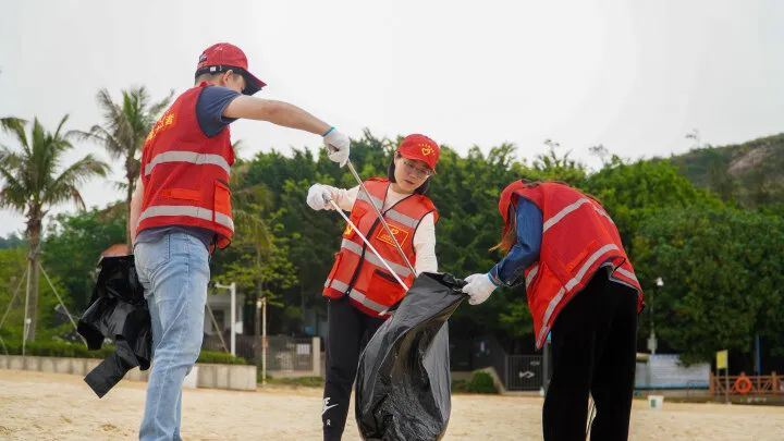 大亞灣石化園區(qū)黨員志愿者清理海灘;葜萑請笥浾呖锵娑鯏z