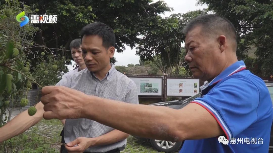 在果園里,惠東縣農(nóng)業(yè)推廣中心農(nóng)技師幫農(nóng)戶查看荔枝掛果情況,傳授管理經(jīng)驗(yàn)。