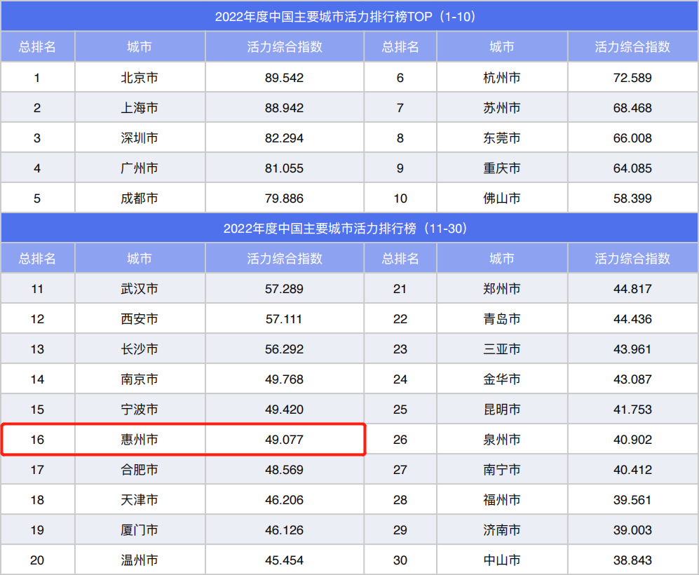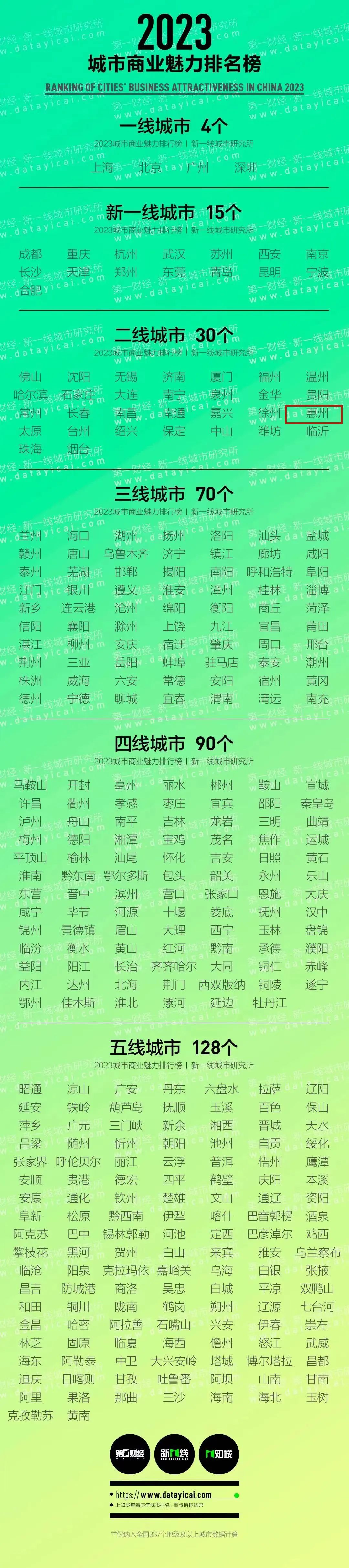 惠州在全國(guó)337個(gè)地級(jí)及以上城市中
