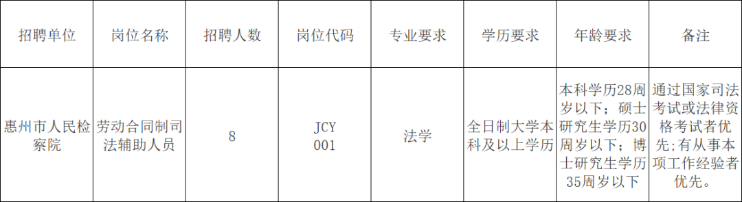 02惠州市人民檢察院公開招聘勞動合同制司法輔助人員