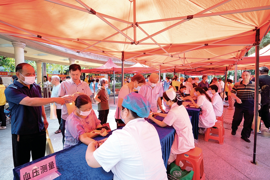 “阿叔,請問您有什么健康問題需要咨詢?”“來這邊,我給您檢查一下!薄莩菂^(qū)橋西黨建文化廣場作為活動主會場,很快吸引了一大批社區(qū)群眾和退役軍人及家屬前來咨詢和問診。其他六個分會場醫(yī)療義診活動也得到了社區(qū)群眾的歡迎和普遍好評。據(jù)統(tǒng)計,共有1500多名群眾參加義診,進一步提高了自身的健康意識;葜菔械诙嗣襻t(yī)院、中信惠州醫(yī)院、惠州市種德慈善會、方舟健康體檢、李飛口腔門診部、愛爾眼科及各縣(區(qū))相關(guān)醫(yī)療機構(gòu)80多名醫(yī)護人員志愿者和68名戰(zhàn)旗志愿服務(wù)隊隊員參加活動。