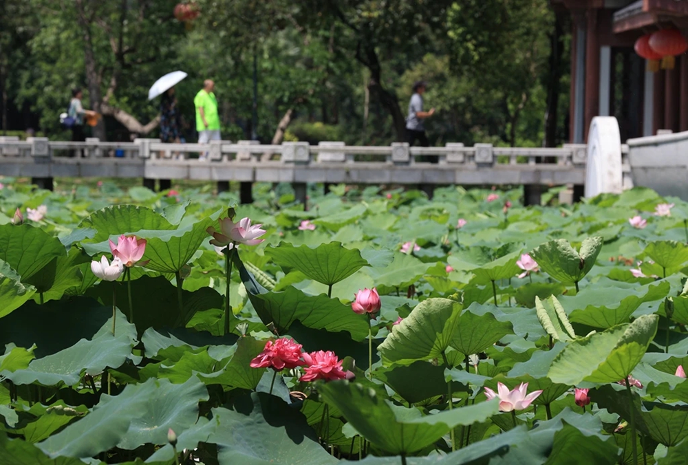夏日荷花這道美麗的風(fēng)景線讓市民趨之若鶩。
