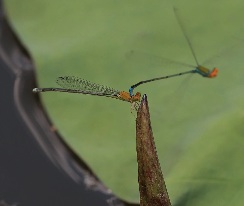 站在荷花上等待捉魚的翠鳥猛然插入水中,