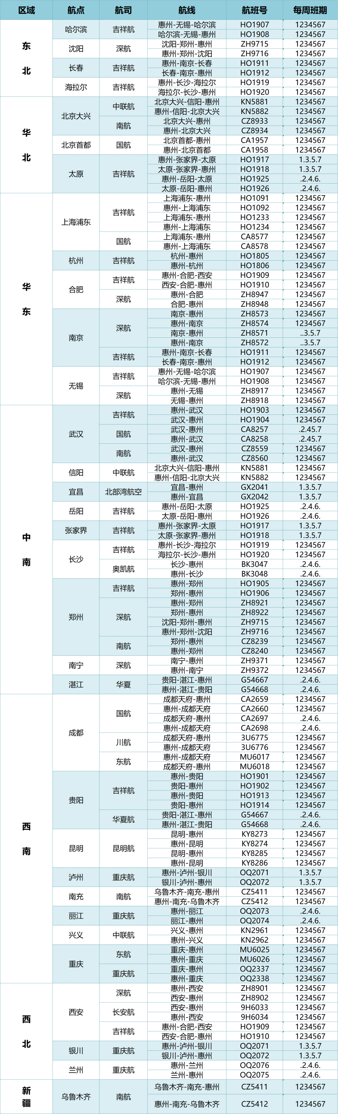 注:具體航班時(shí)刻以航空公司官網(wǎng)公布為準(zhǔn),可掃描惠州機(jī)場微信公眾號(hào)進(jìn)行實(shí)時(shí)查詢。