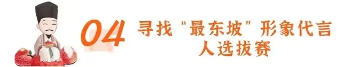 活動(dòng)內(nèi)容:參賽者以圖文、視頻、音頻等形式進(jìn)行線上報(bào)名,結(jié)合東坡的才情、樂(lè)天、愛(ài)民等特點(diǎn),講好東坡故事,展現(xiàn)東坡魅力,要求形神俱備、幽默風(fēng)趣、有感染力。由惠州日?qǐng)?bào)社組織實(shí)地選拔,通過(guò)現(xiàn)場(chǎng)自我介紹、儀表展示、才藝展示、素質(zhì)展示四個(gè)方面,評(píng)出“最東坡”形象代言人,邀請(qǐng)參加粉絲大會(huì)并頒發(fā)榮譽(yù)證書(shū)。