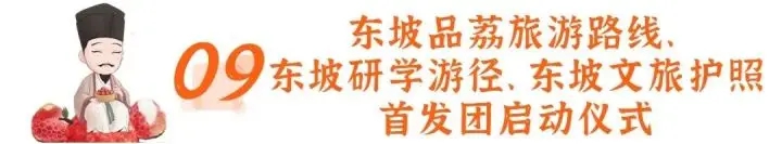 活動(dòng)內(nèi)容:組織媒體記者、網(wǎng)紅達(dá)人、旅行社行業(yè)代表等人員參與首發(fā)儀式,公開(kāi)發(fā)布東坡品荔旅游路線、“幸惠西湖”東坡研學(xué)游徑、推出《東坡文旅護(hù)照》以及文旅消費(fèi)補(bǔ)貼旅游路線,結(jié)合荔枝成熟季開(kāi)展“萬(wàn)人品嘗東坡荔枝”等活動(dòng)。