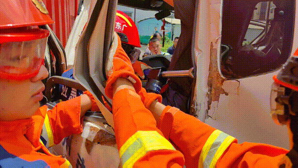 根據(jù)現(xiàn)場(chǎng)情況,消防救援人員立即做好現(xiàn)場(chǎng)警戒,同時(shí)安撫被困人員的情緒,使用液壓破拆組合將貨車主駕駛車門擴(kuò)張開,再合理利用液壓頂桿將被困人員救出。經(jīng)過10分鐘的救援,被困人員被救出并由現(xiàn)場(chǎng)醫(yī)護(hù)人員送往醫(yī)院救治。