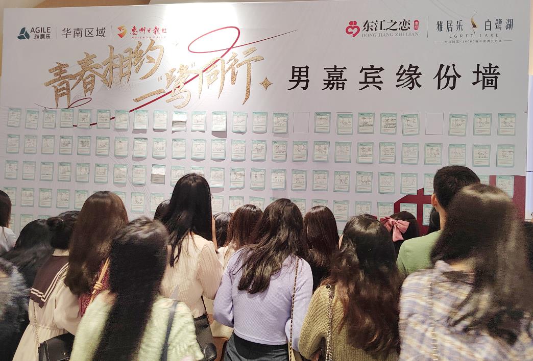 惠州日?qǐng)?bào)旗下的“惠報(bào)·東江之戀”近期組織的8場(chǎng)婚戀交友活動(dòng),吸引超過千人參與,這是活動(dòng)現(xiàn)場(chǎng)中的男嘉賓緣婚墻。