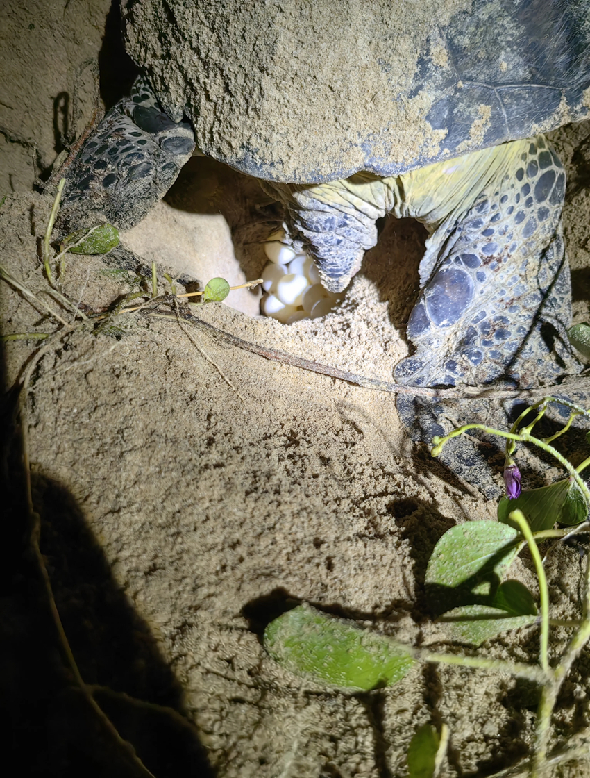 正在產卵的野生母海龜。