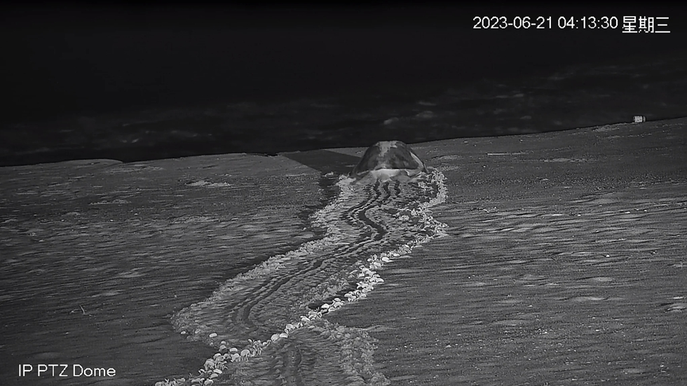 6月21日凌晨1時30分許,廣東惠東海龜國家級自然保護區(qū)的賊奧沙灘上,迎來今年第一只野生成年母海龜上岸產卵。