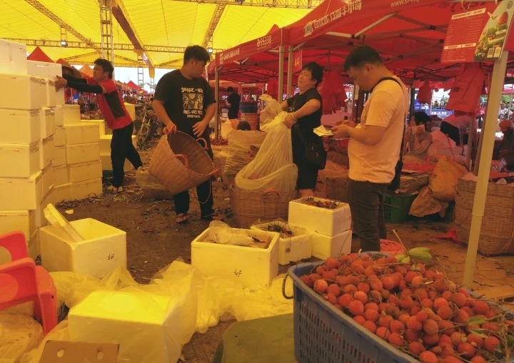 惠州日?qǐng)?bào)訊 (記者劉建威)夏至前后,荔枝上市。6月22日上午,記者在全省最大的荔枝交易市場(chǎng)——RCEP廣東惠州(鎮(zhèn)。├笾灰字行目吹,荔農(nóng)采摘的桂味和糯米糍品種備受采購商歡迎,快遞公司在現(xiàn)場(chǎng)設(shè)置多個(gè)臨時(shí)收貨點(diǎn),接收市民郵寄,購銷兩旺。
