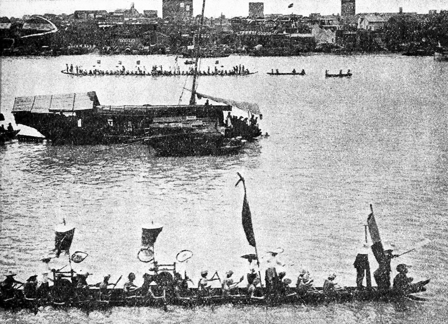民國(guó)初年?yáng)|江上的龍舟賽。 嚴(yán)藝超翻拍