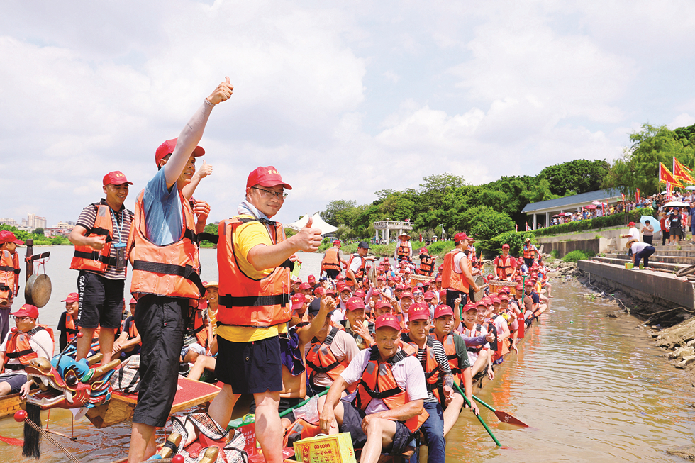 在園洲鎮(zhèn),每年端午節(jié)期間都會(huì)舉辦龍舟賽、“龍船景”等民俗活動(dòng)。連日來(lái),除了下南村,白馬圍村、寮仔村、李屋村及江頭村等村都相應(yīng)組織了“游龍船”活動(dòng)。一場(chǎng)場(chǎng)“速度與激情”的角逐,既寄托著村民對(duì)國(guó)泰民安、風(fēng)調(diào)雨順的美好愿景,又成為一代代園洲人團(tuán)結(jié)奮進(jìn)、拼搏爭(zhēng)先的精神寫照。