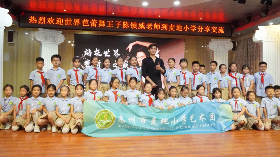 6月19日下午,有著“芭蕾王子”美譽(yù)的國(guó)際頂級(jí)舞團(tuán)紐約城市芭蕾舞團(tuán)首席陳鎮(zhèn)威回到家鄉(xiāng)惠州,走進(jìn)惠州市麥地小學(xué)與同學(xué)們一起交流,分享他學(xué)習(xí)芭蕾舞的經(jīng)驗(yàn)和藝術(shù)成長(zhǎng)之路。