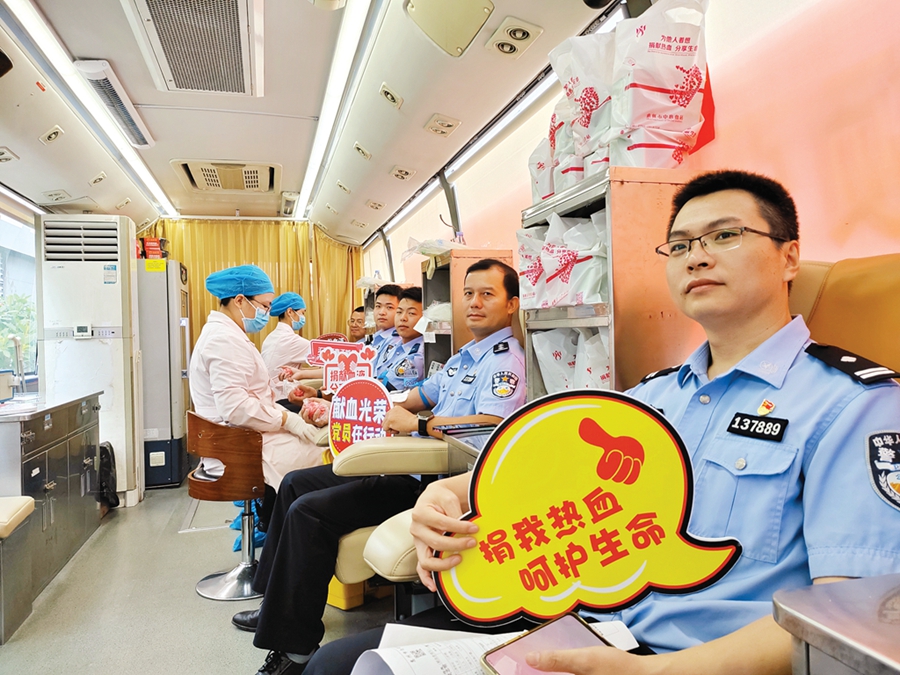 市公安局治安管理支隊(duì)黨員民警與共建單位志愿者一同參與無(wú)償獻(xiàn)血。