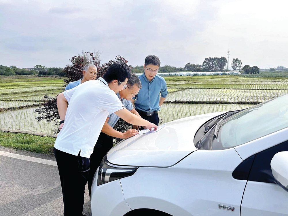 市紀(jì)檢監(jiān)察系統(tǒng)工作人員深入田間地頭開展監(jiān)督檢查。