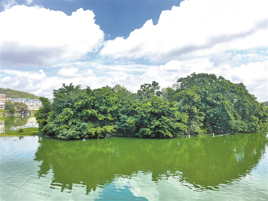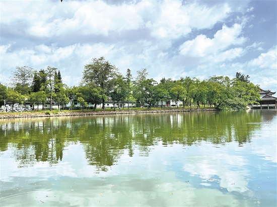 現(xiàn)位于行人匆匆、車水馬龍的圓通橋北側,與仲元亭隔水相望的集鷗渚,成群鷺鳥時常在這座小巧而秀氣的湖島棲息覓食。從高空俯瞰,集鷗渚就像一把凌波而放的古琴,曾有著“夫子之琴”之稱,同樣不為大眾所周知。