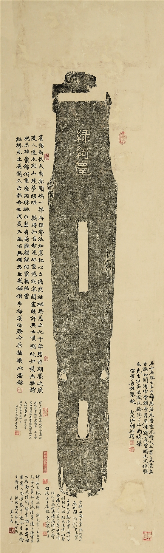 張氏藏琴六十余年后,家道中落,琴亦殘舊,蟲蟻蛀蝕,首尾皆殘,不得已之下變賣古琴。1914年8月,綠綺臺為東莞同鄉(xiāng),民國知名篆刻家、書法家、金石家鄧爾雅以千元購得。鄧爾雅是晚清名臣、惠州鄧承修的學生,深知此琴意義。他所得雖是一張朽琴,卻視同性命,不僅作《綠綺臺琴記》,完整記錄了“綠綺臺”古琴的流傳故事,還為綠綺臺制成拓片,分贈友人,以期加大其影響范圍。