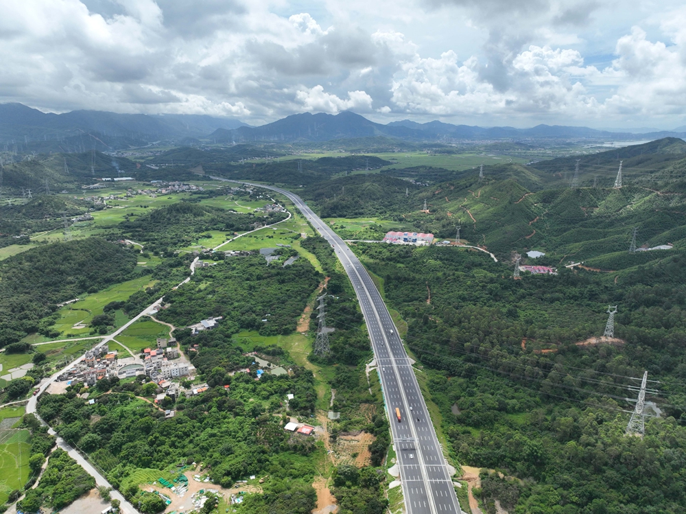 吉隆互通主線汕頭方向車輛轉(zhuǎn)換至右幅行駛。