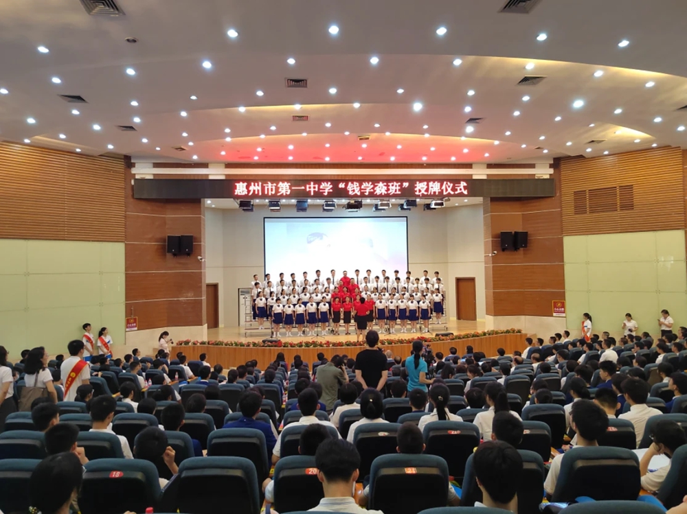 授牌儀式現(xiàn)場,錢學森教育工作委員會副主任、北京理工大學教授陶然宣讀了批復。錢永剛教授為惠州市第一中學“錢學森班”授牌;葜菔械谝恢袑W黨委書記李海媚、校長陳平肸為“錢學森班首席專家”頒發(fā)聘書。