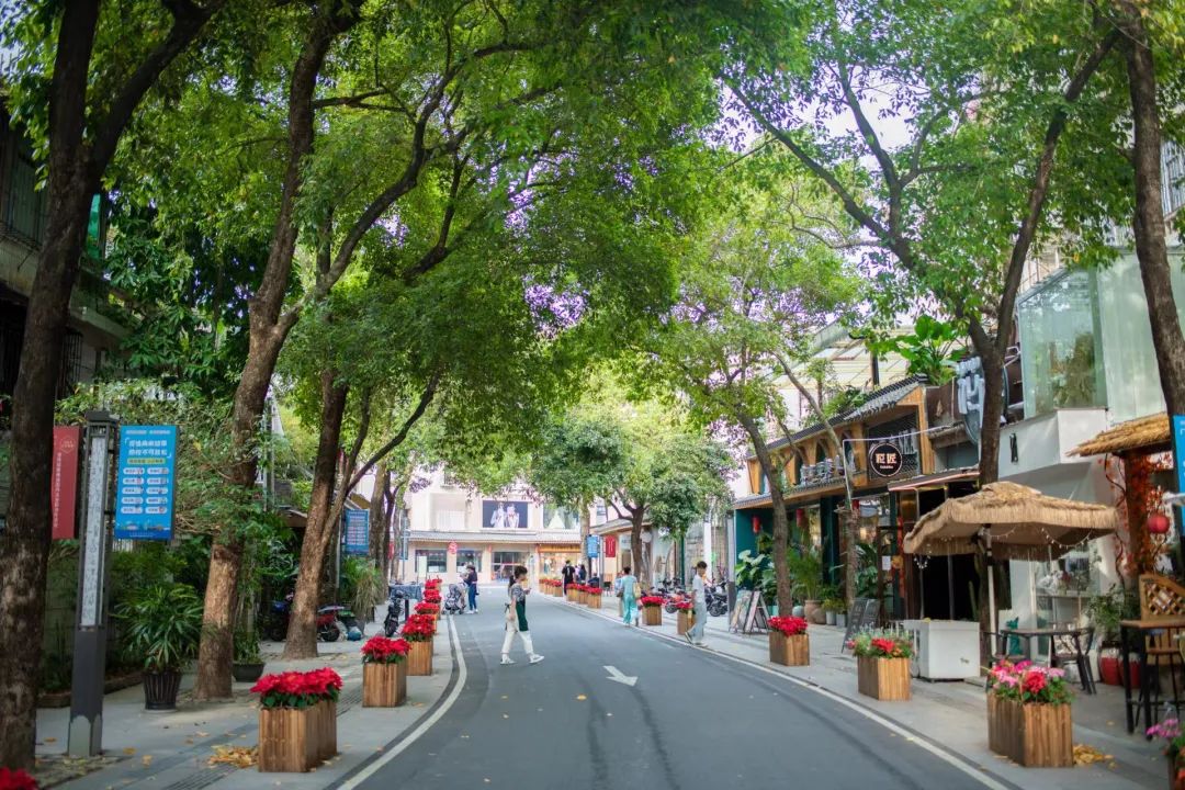 在祝屋巷的兩旁遍布著許多好玩有趣的文創(chuàng)商鋪與美食商鋪,新舊結(jié)合的建筑風(fēng)格、充滿設(shè)計(jì)感的各種文化墻,搭配路旁的綠樹與湖邊的美景,真可謂如詩如畫。