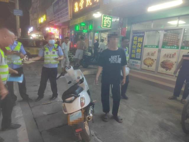 6月28日8時(shí)許,根據(jù)布署,部分警力開(kāi)始便衣埋伏在新樂(lè)三路街道中心,其余警力象往常一樣在道路的另一端巡邏檢查,全體警員密切關(guān)注著路面車輛動(dòng)態(tài)。在沐浴了2個(gè)多小時(shí)的烈日驕陽(yáng)后,一輛研判發(fā)現(xiàn)的目標(biāo)車終于出現(xiàn),在警員的停車示意和共同合圍下,車輛終被攔停;經(jīng)查,車輛為改裝的響喉摩托車,排氣管道中發(fā)出的聲音十分震耳。