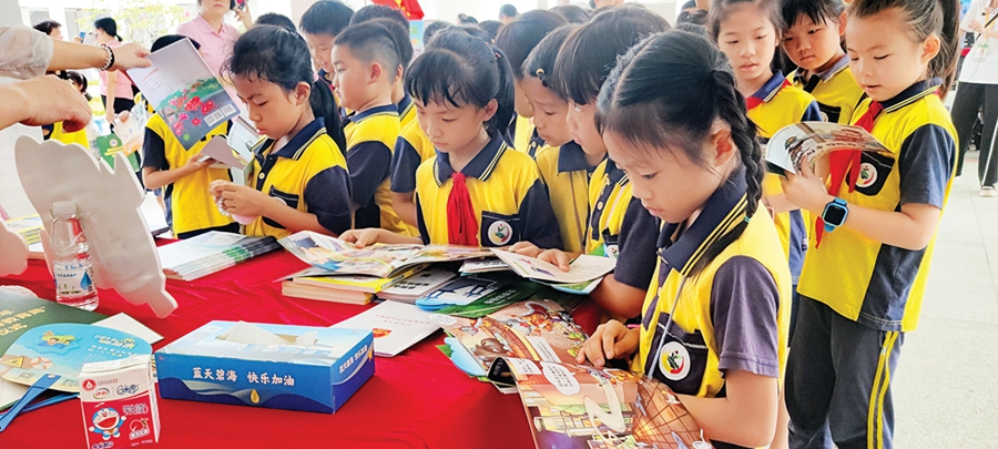 學生在看安全知識繪本。 惠州日報記者范文燕 姜勁宇 見習記者蘇凌奕 通訊員羅志雄 攝