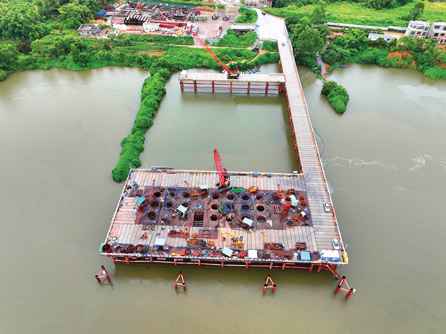 惠肇高速項目先行工程東江特大橋主墩平臺抓緊建設(shè);葜萑請笥浾哏姇承 通訊員吳孟孚 攝