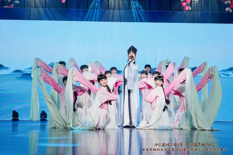 “日啖荔枝三百顆 不辭長(zhǎng)作嶺南人”首屆東坡粉絲大會(huì)暨2023惠州東坡文化旅游周開(kāi)幕式以“荔枝”為媒,打造了一場(chǎng)集互動(dòng)、視聽(tīng)、娛樂(lè)、觀賞為一體的東坡文化原創(chuàng)精品主題晚會(huì),帶來(lái)了一場(chǎng)東坡寓惠內(nèi)涵的沉浸式體驗(yàn),烹出了一桌嶺南東坡文化文旅IP的饕餮盛宴。