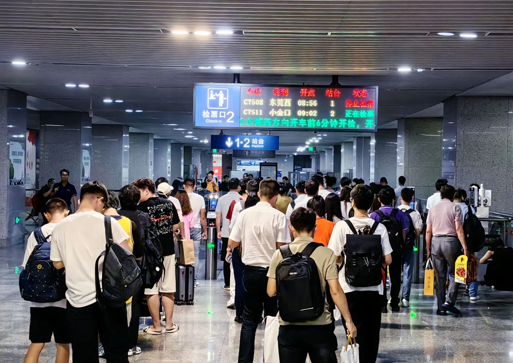 莞惠城際有關(guān)負(fù)責(zé)人介紹,暑運(yùn)客流主要是學(xué)生流、旅游流、探親流,學(xué)生流及旅游流集中在云山、西湖東、陳江南、樟木頭東、常平南、松山湖北、寮步、東城南和西平西等主要站點(diǎn)之間流動(dòng)。從上周末客流情況看,學(xué)生、兒童等客流較2019年有所提前。本周末,惠州和東莞中小學(xué)都將陸續(xù)放假,預(yù)計(jì)將迎來(lái)今年暑運(yùn)第一波高峰,全線(xiàn)單日到發(fā)送量將突破5萬(wàn)人次。