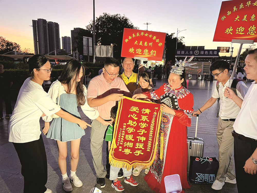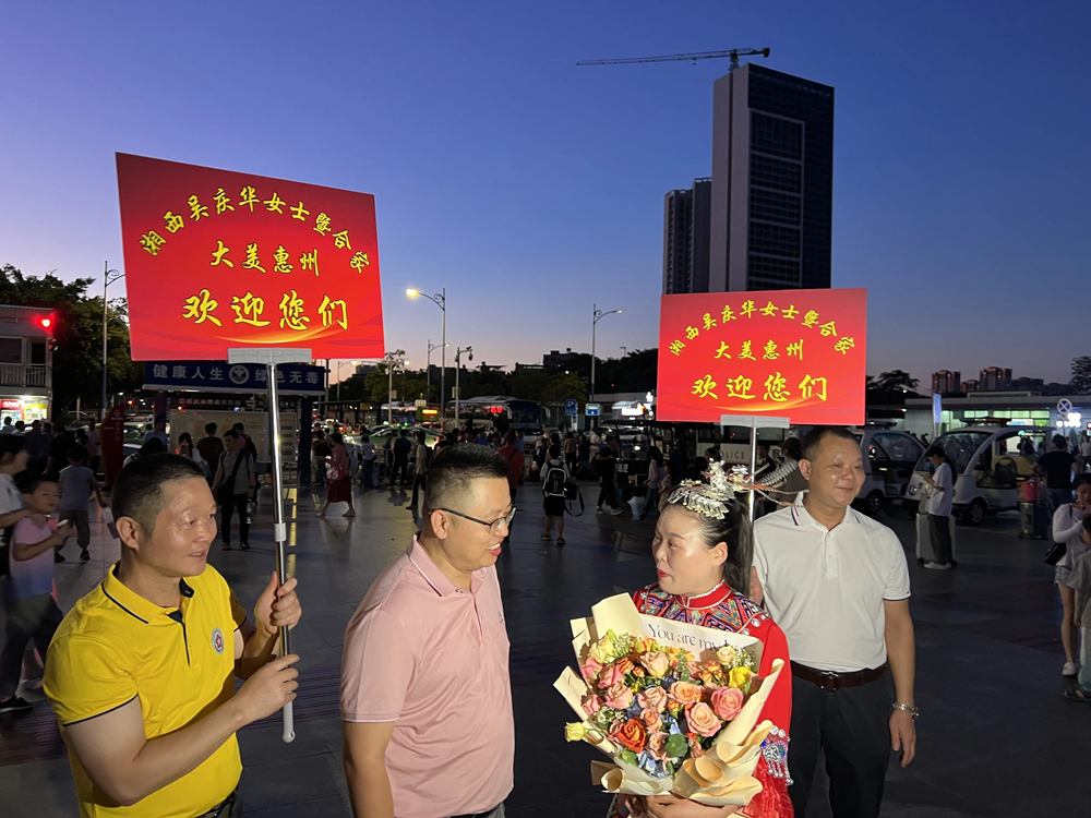 吳慶華一家來到惠州期間,張鑒銘一家還帶著他們到惠州西湖等地游玩!拔艺媲械馗惺艿搅嘶葜菔且蛔拿髦、大愛之城,這里好人很多,我也真誠邀請惠州人民到我們湘西永順去玩、去投資,讓兩地溝通更多,聯(lián)系更多!眳菓c華說。