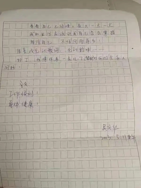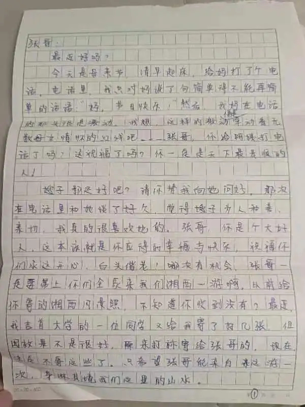 “讀大學(xué)的時候,我家的家庭情況有所改善,我便主動跟張哥說不用他繼續(xù)給我匯錢了!眳菓c華說。在大學(xué)期間,她還是會繼續(xù)給張鑒銘寫信,告訴他近況。畢業(yè)參加工作后,她買了人生中的第一部手機(jī),第一個電話也是撥給了張鑒銘——“張哥,以后我再也不用去公共電話亭給你打電話了,我們見個面吧,我要當(dāng)面感謝你”。