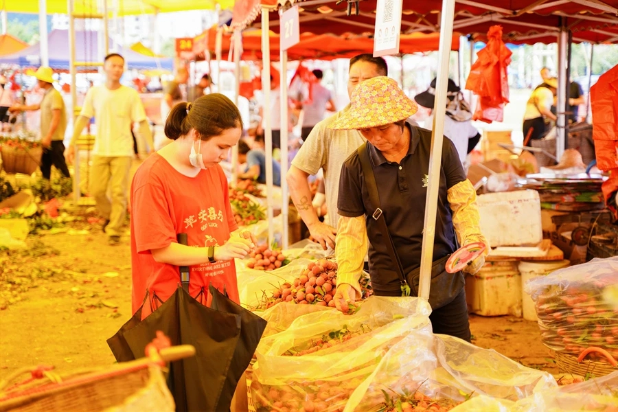 作為首屆東坡粉絲大會(huì)暨2023年惠州東坡文化旅游周的系列活動(dòng)之一,不少市民、游客前來(lái)鎮(zhèn)隆荔枝交易中心內(nèi)“打卡”、品嘗、購(gòu)買(mǎi),紛紛感受荔枝豐產(chǎn)年的快樂(lè)。