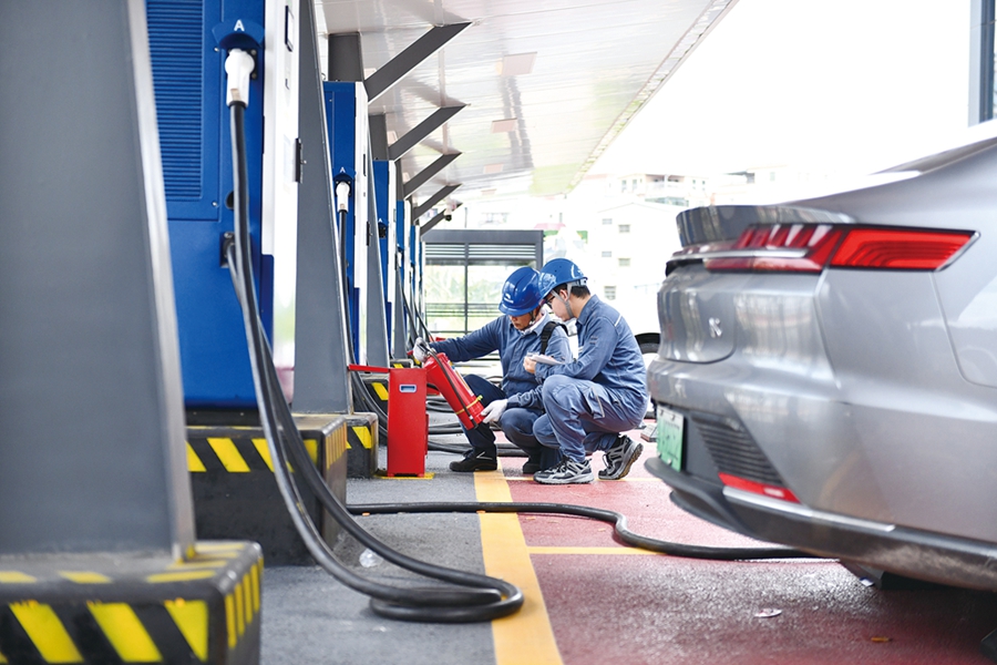 惠城供電局運(yùn)維人員對(duì)望江綜合能源充電站消防設(shè)備進(jìn)行安全檢查。 陳凌 攝