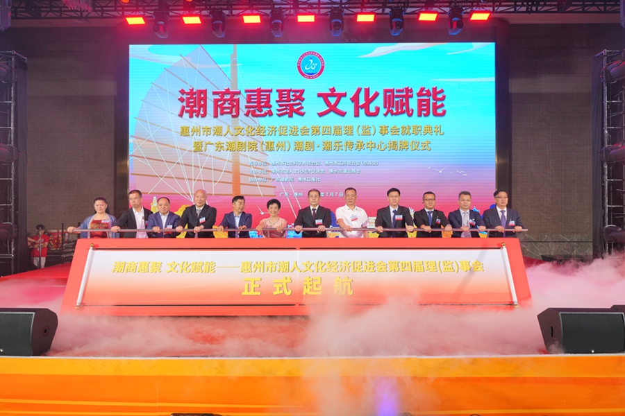 凝聚潮人力量,擦亮潮商品牌,傳播潮汕文化。7月7日晚,由惠州市潮人文化經(jīng)濟(jì)促進(jìn)會(huì)、惠州市潮汕商會(huì)主辦的惠州市潮人文化經(jīng)濟(jì)促進(jìn)會(huì)第四屆理(監(jiān))事會(huì)就職典禮暨廣東潮劇院(惠州)潮劇·潮樂(lè)傳承中心揭牌儀式在惠州市富力萬(wàn)麗酒店隆重舉行。中國(guó)僑聯(lián)、國(guó)際潮團(tuán)總會(huì)、惠州市政協(xié)、市委統(tǒng)戰(zhàn)部、市民政局、市商務(wù)局、市社科聯(lián)、市工商聯(lián)、市僑聯(lián)等有關(guān)單位領(lǐng)導(dǎo)以及潮汕四市政府代表和工商聯(lián)等單位領(lǐng)導(dǎo)出席大會(huì),來(lái)自國(guó)際潮團(tuán)組織、全國(guó)各地商會(huì)社團(tuán),以及惠州、汕頭、潮州、揭陽(yáng)、汕尾的潮汕鄉(xiāng)賢、企業(yè)家等600余人歡聚一堂,見(jiàn)證新一屆理(監(jiān))事會(huì)履新就職,共謀潮商發(fā)展大計(jì)。