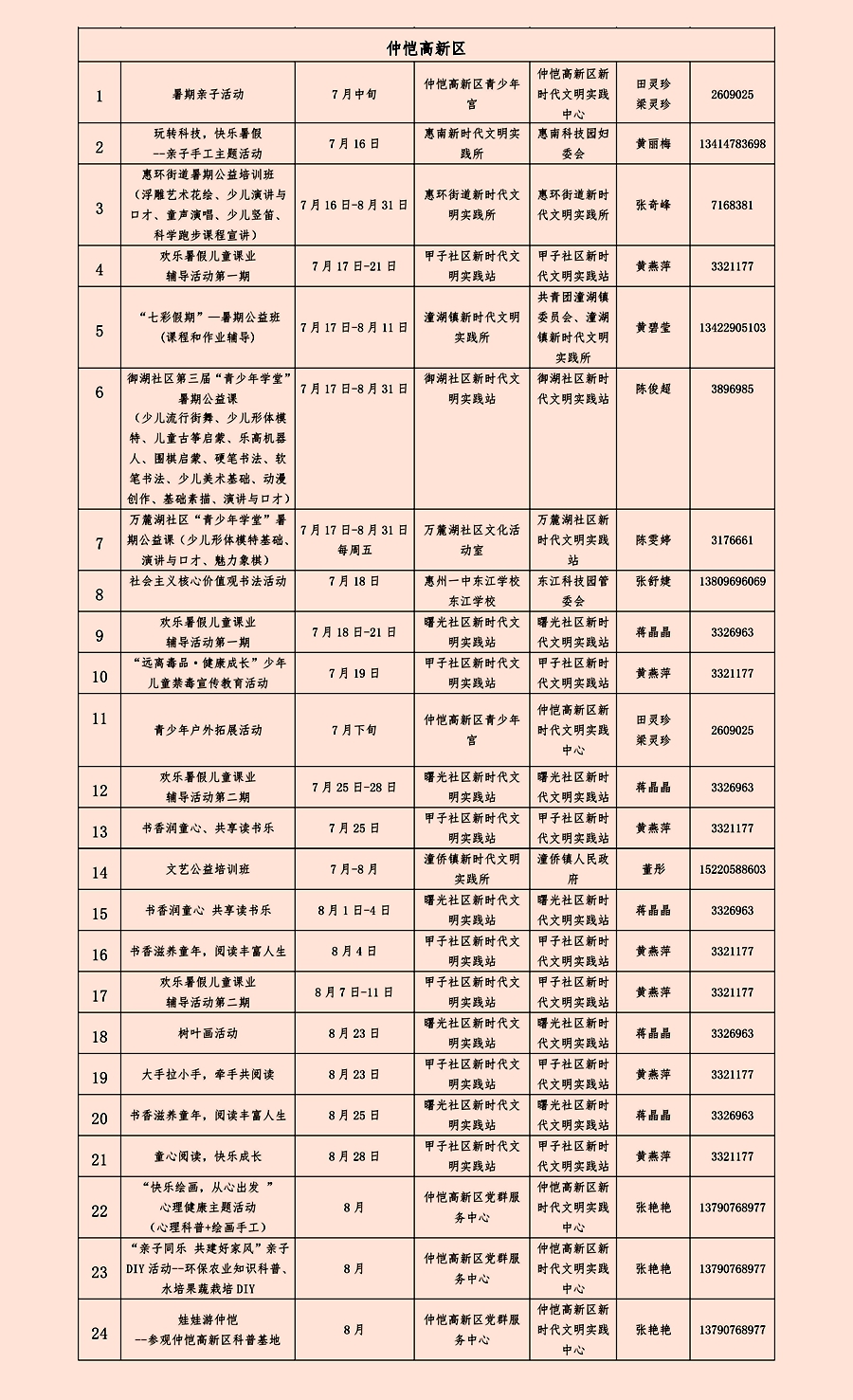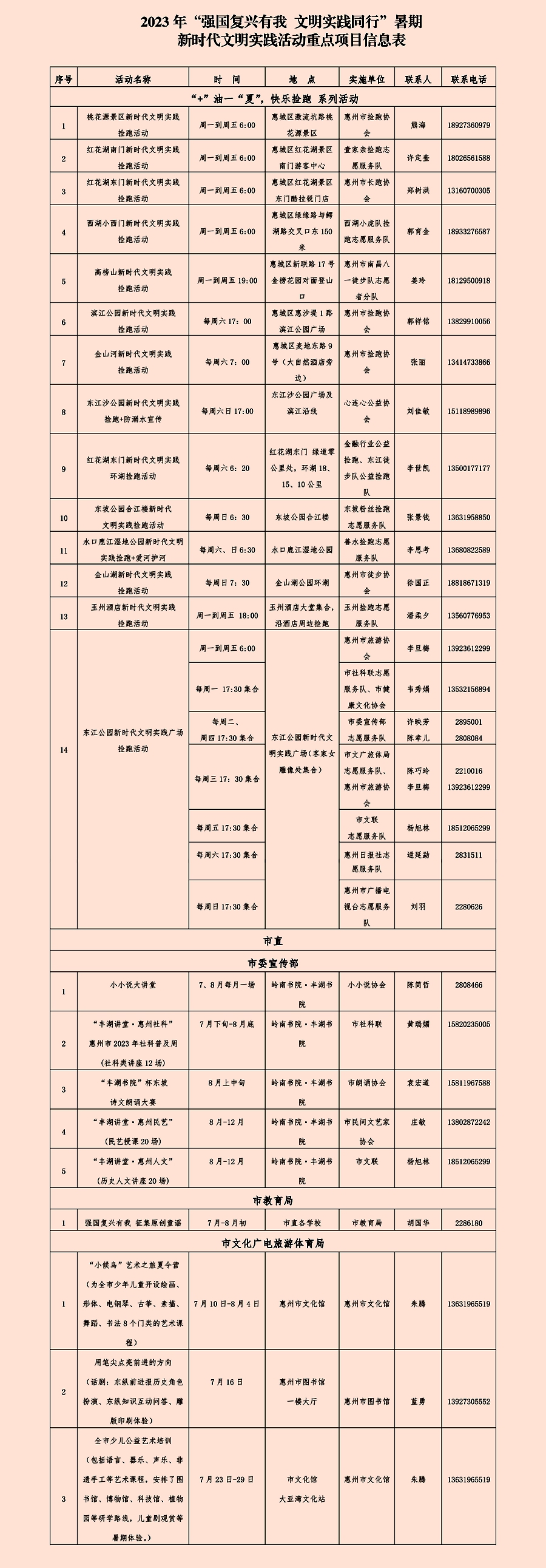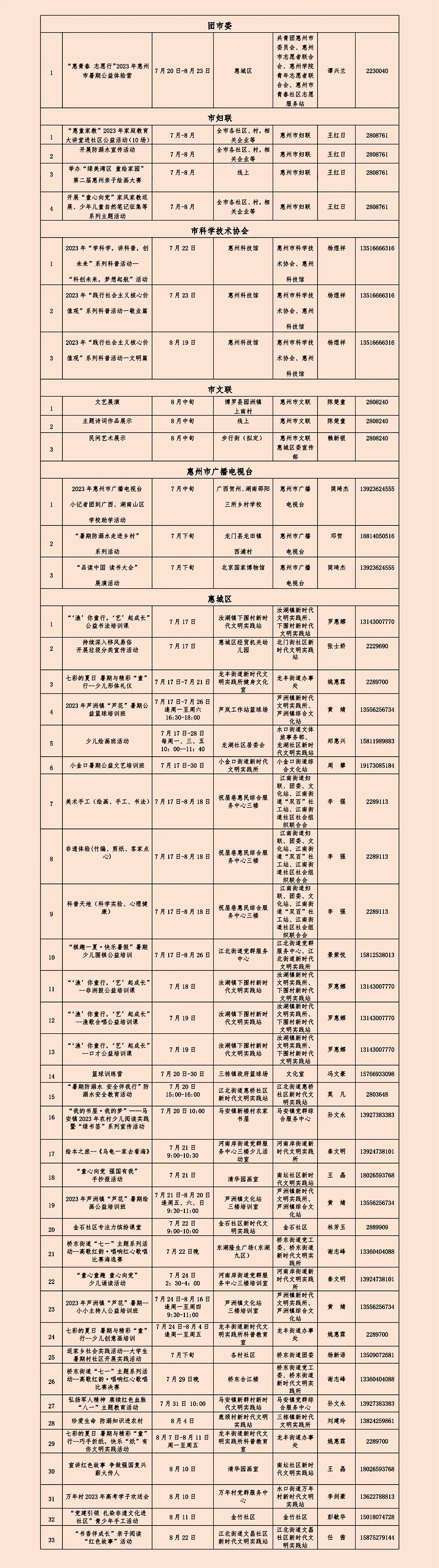 惠州日?qǐng)?bào)訊 (記者龔妍 通訊員梁玉丹)218項(xiàng)文明實(shí)踐活動(dòng)讓你的暑假生活有“知”有“味”。7月16日,記者從市委宣傳部獲悉,今年暑假,我市將以各新時(shí)代文明實(shí)踐中心、所、站為依托,精準(zhǔn)對(duì)接群眾需求,堅(jiān)持“公益+志愿”理念,用活室內(nèi)與室外陣地,圍繞公益撿跑、文化藝術(shù)、體育運(yùn)動(dòng)、勞動(dòng)實(shí)踐等主題,在全市范圍內(nèi)開展218項(xiàng)主題鮮明、內(nèi)容豐富的新時(shí)代文明實(shí)踐活動(dòng),進(jìn)一步豐富廣大市民朋友的暑假生活。
