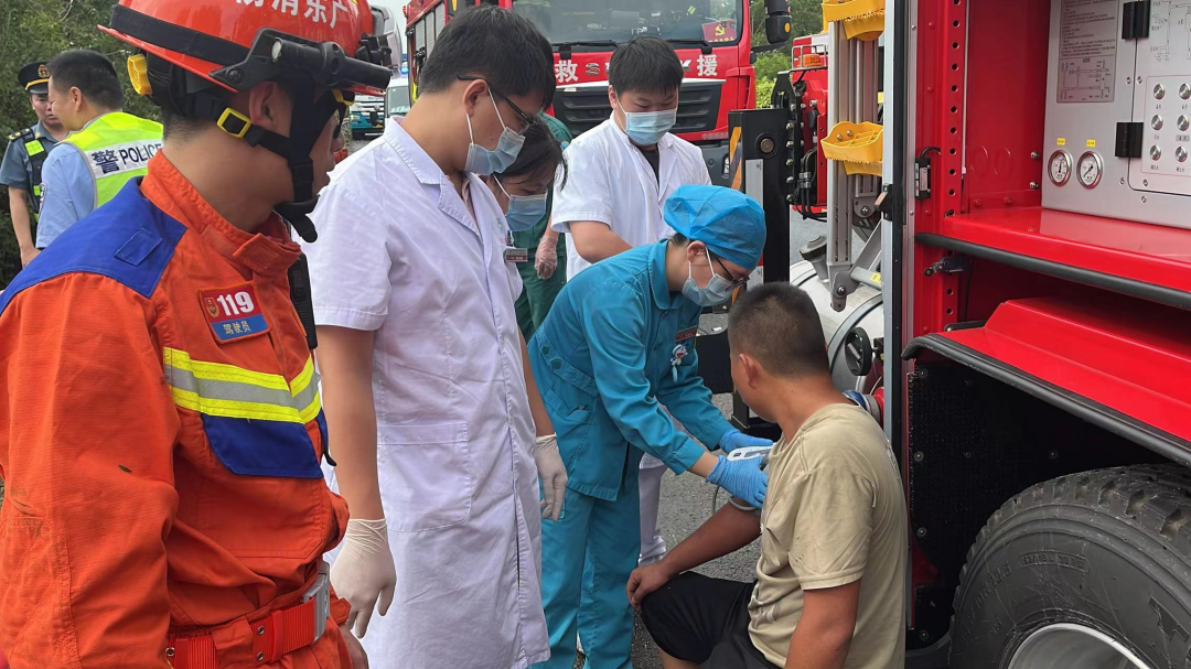 經(jīng)過近半小時(shí)的緊張救援,消防員成功將一名男子救出,并將其移交現(xiàn)場(chǎng)醫(yī)護(hù)人員進(jìn)行救治。