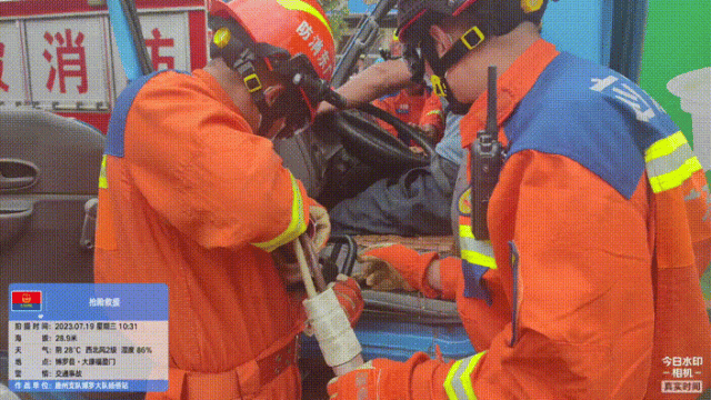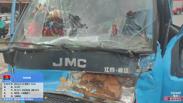 根據(jù)現(xiàn)場(chǎng)情況,現(xiàn)場(chǎng)指揮員立即立即評(píng)估救援方案:1名消防員與受困人員進(jìn)行交談,穩(wěn)定受困人員的情緒,確保其積極配合救援;其余隊(duì)員利用液壓擴(kuò)張器對(duì)小貨車主駕駛室進(jìn)行破拆、頂撐,擴(kuò)大救援空間。