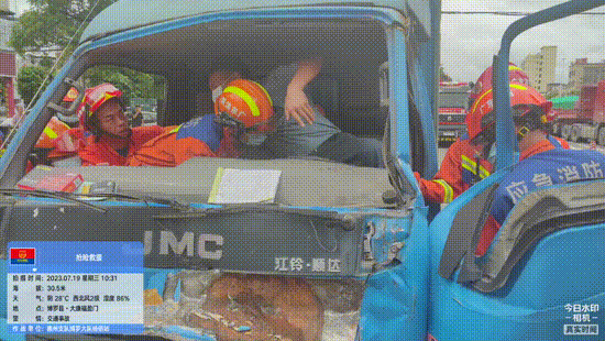 經(jīng)過(guò)約10分鐘的緊急救援,司機(jī)被成功救出。