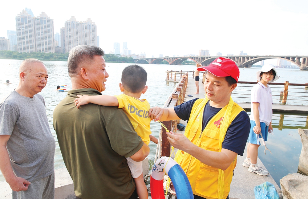 志愿者宣傳防溺水安全知識(shí);葜萑?qǐng)?bào)記者鐘暢