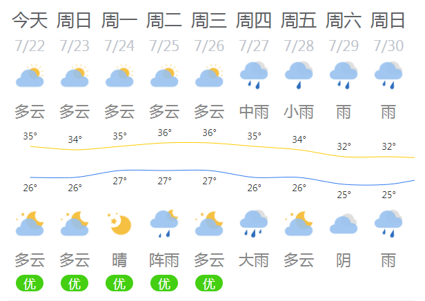 市氣象臺(tái)預(yù)計(jì),未來(lái)五天(7月21~25日)我市天氣以高溫晴熱為主,最高氣溫35~36℃。截至7月21日12時(shí)02分,我市六縣區(qū)發(fā)布高溫黃色預(yù)警信號(hào),大家要注意防暑防曬。