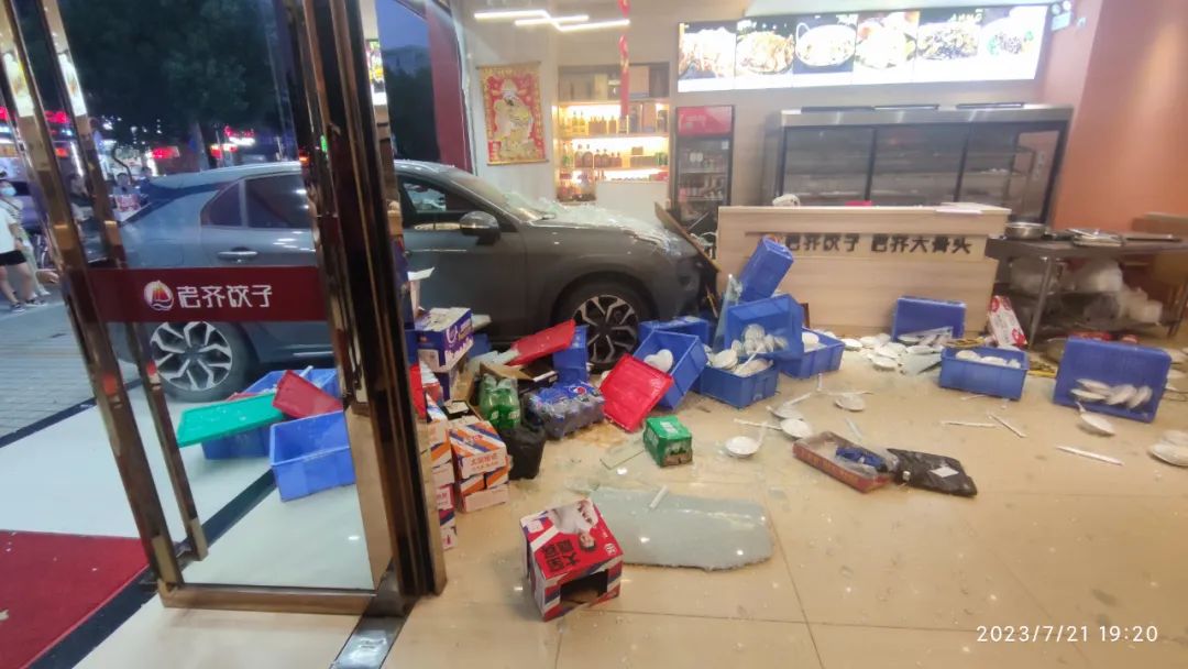 一部SUV撞進(jìn)一家餃子館,