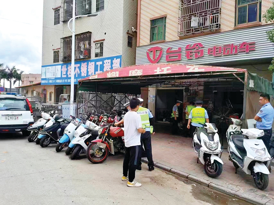 惠州交警檢查電動(dòng)車是否存在非法改裝。