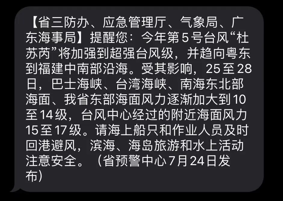 鑒于臺風(fēng)“杜蘇芮”的發(fā)展趨勢