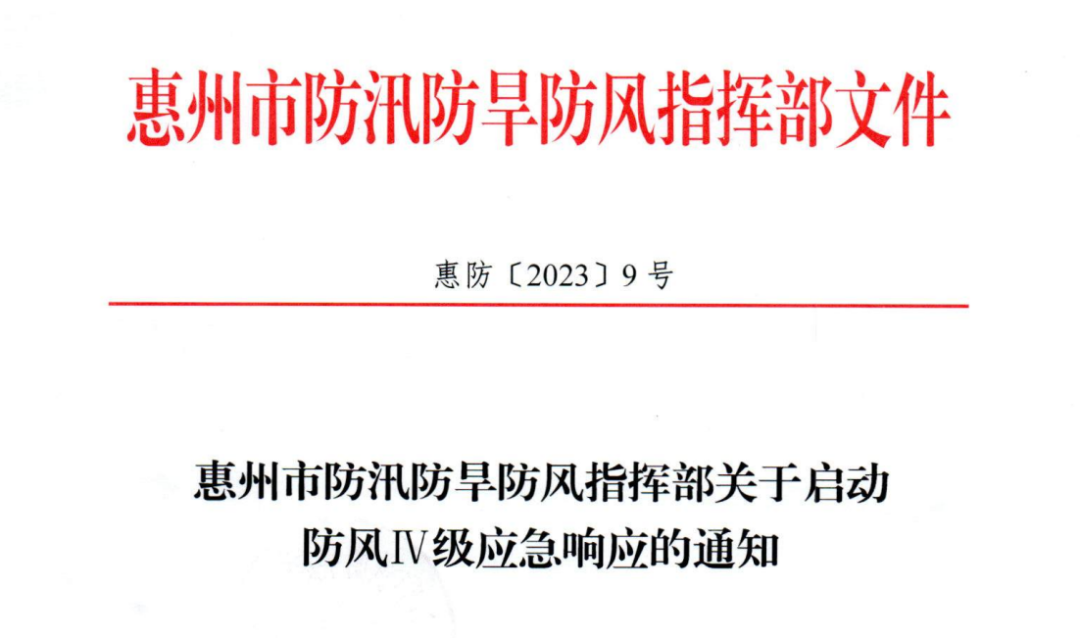 目前惠州啟動防風(fēng)Ⅳ級應(yīng)急響應(yīng)