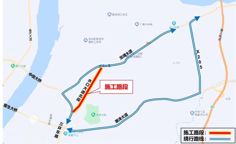 7月26日,惠州市公安局交警支隊發(fā)布《關于水口大道北段實施臨時交通組織的通告》。7月28日至施工結束(工期約15個月) ,惠城區(qū)水口大道北段(三環(huán)東路/水口大道交叉口——龍湖大道/水口大道交叉口)實施半封閉施工,施工圍蔽路段將保持雙向4車道通行,建議過往車輛選擇龍湖大道或惠澤大道等道路繞行。