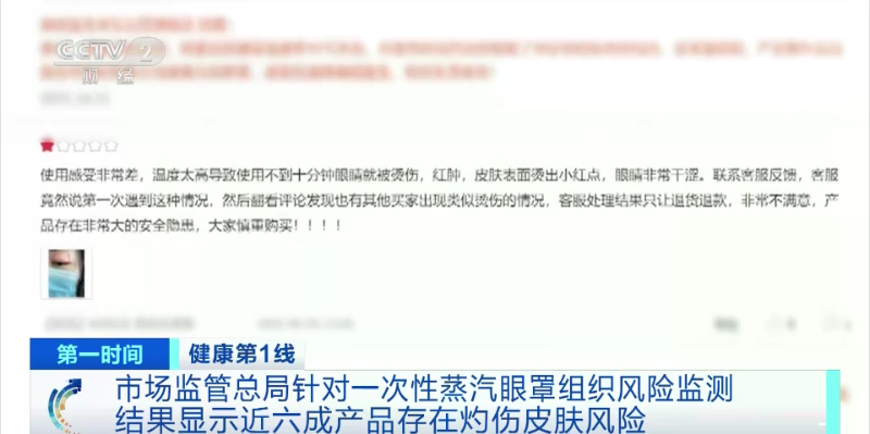 在一家電商平臺(tái)一次性蒸汽眼罩產(chǎn)品售后商品評(píng)價(jià)中有留言:“溫度太高,使用不到十分鐘眼睛就被燙傷,紅腫,皮膚表面燙出小紅點(diǎn),眼睛非常干澀!