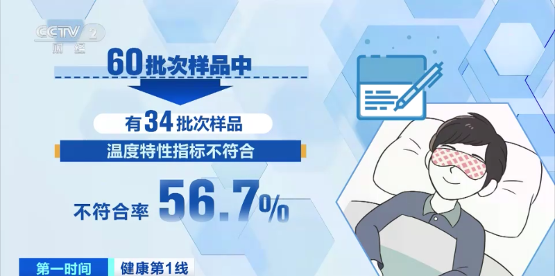 監(jiān)測發(fā)現(xiàn),60批次樣品中有34批次的樣品溫度特性指標(biāo)不符合,不符合率達(dá)到了56.7%。專家告訴記者,一次性蒸汽眼罩發(fā)熱溫度較高或持續(xù)時(shí)間過長都可能造成眼部皮膚傷害的可能性大幅上升。