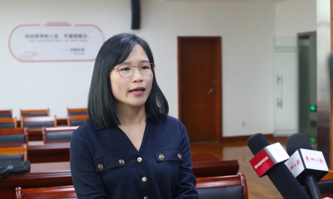 惠州市九惠制藥股份有限公司副總經理黃麗玲接受惠州日報記者采訪。